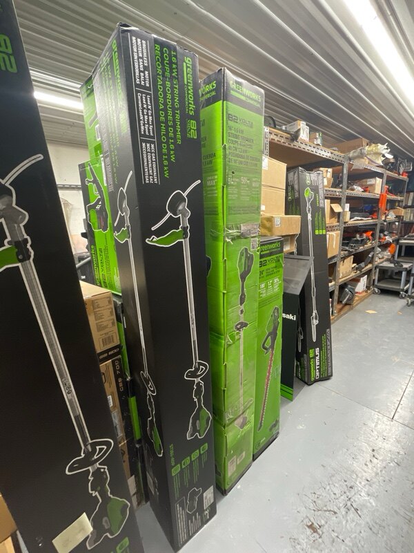 The Greenworks 82V 1.6kW String Trimmer outperforms a 36cc gas trimmer in power yet weighs much less.