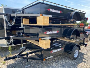 5' wide x 10' long galvanzied single axle landscapentrailer with,14" deep sides, 2990 LBS GVWR, 48" meshnramp, 14" tires with 5 bolt hubs, all sealed wiring, 2"nball coupler, Galvanized 14" tires - upgrade gvwr