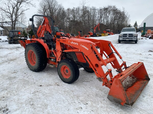 Used 2021 Kubota MX5400DTRC 4wd 54hp tractor with 8x8ntransmission, nokian tires, one remote and loader withn72" skid steer bucket