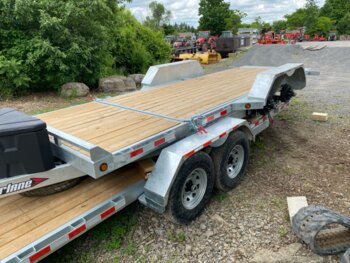 20' galvanized low profile equipment float with 16'ntilt deck with dampening cylinder and 4' stationarynplatform, tandem 7000 lbs slipper spring axle with easynlube hubs, heavy duty fenders d-rings, pintle hitch,ntongue mount poly storage box, led lights, galv rims,nadjustable 2-5/16" ball coupler