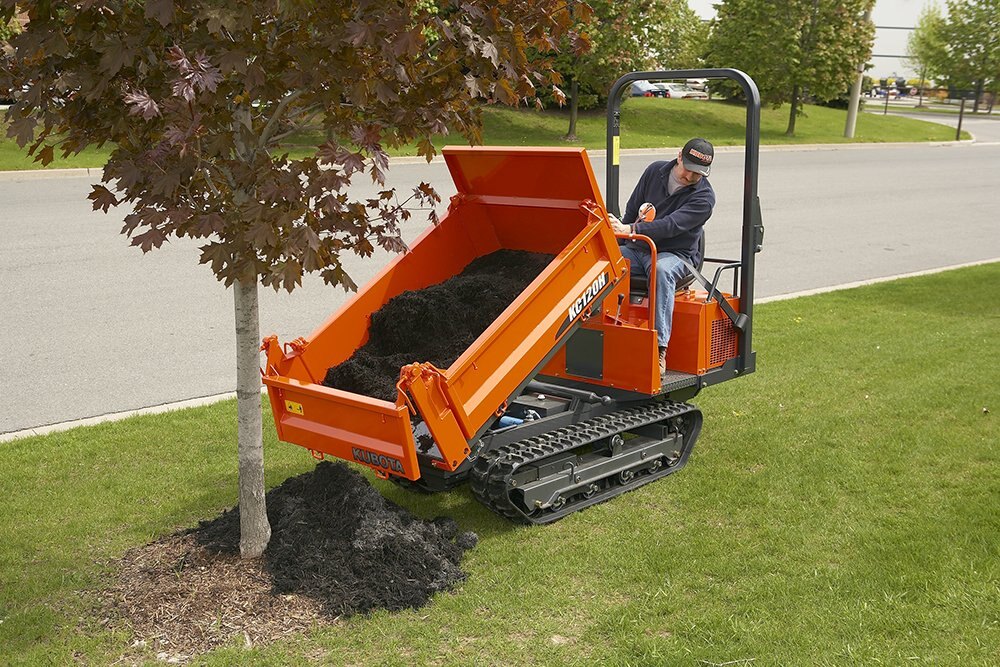 Large Load CapacityThough quite compact, the KC-Series of Kubota rubber track carriers feature notably large load capacities - 1,543 lbs (700 kg) for the KC70 and 2,6461bs (1200 kg) for the KC120HC. |