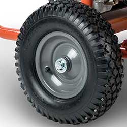 HEAVY-DUTY PNEUMATIC WHEELS for maneuvering in and out of storage or around a job site. |