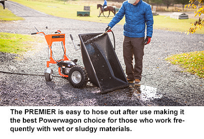 The PREMIER Powerwagon, with its easy-starting Briggs and Stratton engine (6.75 ft lbs torque), makes hauling loads of up to 500 lbs easy, even in tight quarters. It centers the load over the two big, power-driven wheels to propel your load up slopes or over uneven terrain. |