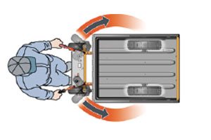 MUCH More Maneuverable than ANY Trailer! The two rear wheels rotate 360° giving the Powerwagon a very tight turning radius. This means you can go into all kinds of spaces you could never take a trailer...through gateways and barn doors, into wooded areas, on narrow trails, etc. |